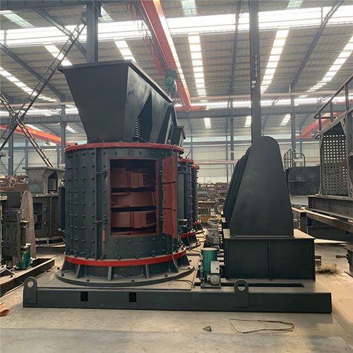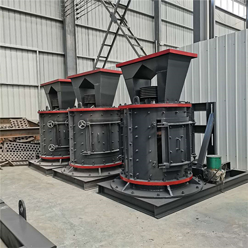 立軸破碎機的主要工作部件為帶有錘子(又稱錘頭)的轉子。電動機帶動轉子在破碎腔內高速旋轉。物料自上部給料口給入機內,受高速運動的錘子的打擊、沖擊、剪切、研磨作用而粉碎。在轉子下部,設有篩板、立軸破碎機粉碎物料中小于篩孔尺寸的粒級通過篩板排出,大于篩孔尺寸的粗粒級阻留在篩板上繼續受到錘子的打擊和研磨,通過篩板排出機外。